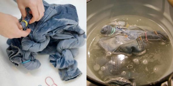 Скрутити і зафіксувати джинси можна як завгодно – експериментуйте! Завдяки цьому завжди виходить різний малюнок.