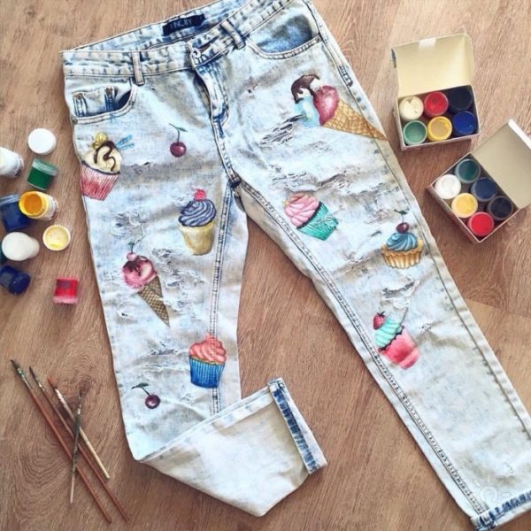 Не хочете міняти колір штанів, а просто прагнете чогось «не як у всіх»? Для цієї мети ідеально підходять акрилові фарби! Я радила б наносити малюнок на тих джинсах, які ви одягаєте «на вихід». Повсякденні ж штани часто стираються, тому краса, терпляче власноруч намальована, швидко потьмяніє або потріскається.