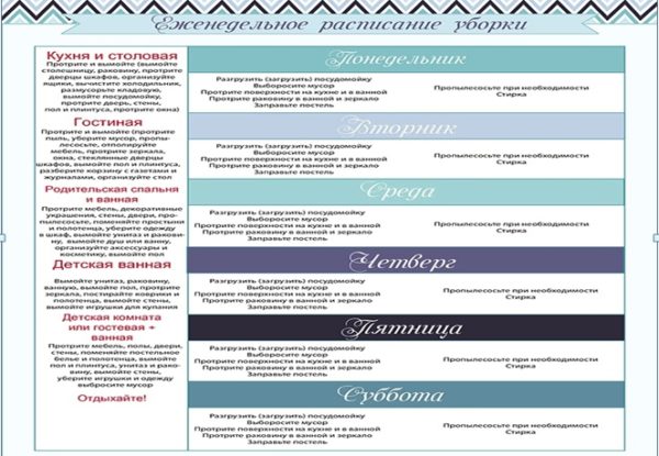 Дуже зручно скласти розклад прибирання на кожен день, як на цьому фото