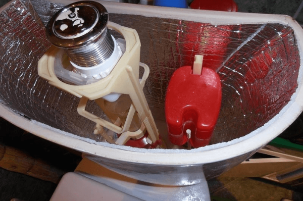 Для цього потрібно листової теплоізоляційний матеріал і силіконовий герметик. Перед роботою зніміть бачок з унітазу, попередньо відключивши воду, осушіть його. Демонтуйте арматуру.