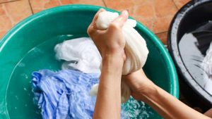 - Речі з кольорової тканини обробляємо нашатирним спиртом в пропорції 1:1, стираємо.