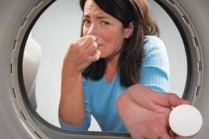 Щоб видалити запах з машинки в цьому випадку, досить влити в машину спеціальний засіб для усунення запаху або хлорвмісний відбілювач і запустити тривалий цикл прання без білизни при температурі 90-95 °С. В подальшому хоча б раз в місяць прати на режимі «кип’ятіння», підбираючи для цього відповідне білизна.