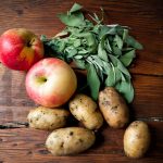 - Наріжте сиру картоплю або яблуко часточками, покладіть на блюдце.