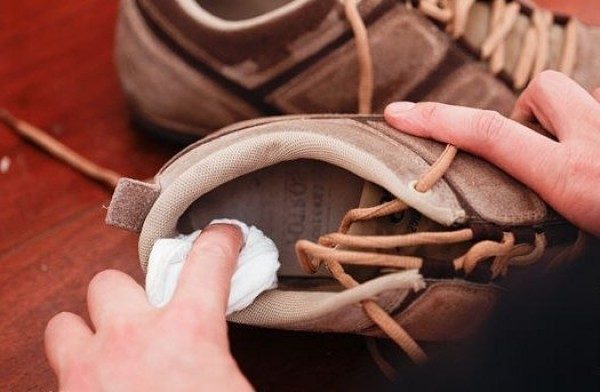 - Такого ж ефекту можна домогтися, застосовуючи оцет, розчин марганцівки або будь-яку спиртову настоянку. Це може бути горілка, нашатирний спирт, борна кислота. Після обробки черевики доведеться добре провітрити.