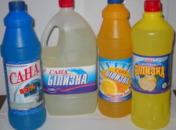 - Відбілювач. Ще одне досить ефективний засіб, ціна якого нижче вартості ґрунтовки. У складі відбілювача міститься гіпохлорит натрію, який згубний для спор грибка. Розведіть його водою у співвідношенні 1 до 10, і нанесіть його на попередньо очищену поверхню.