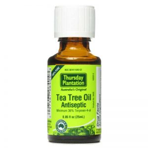 Олія цього дерева – ефективний спосіб прибрати цвіль, однак занадто дорогою. Масло повністю безпечно і не викличе отруєння. Масло дерева володіє відмінними протигрибковими властивостями, може вбити практично всі види цвілевих грибків. 1 ч. л. масла розводять в 1 л води, а потім робочим розчином з пульверизатора обробляють заражену область. Розчин залишають на деякий час, а потім просто змивають. Цей варіант підходить для тих, хто шукає, як позбутися від цвілі в підвалі.