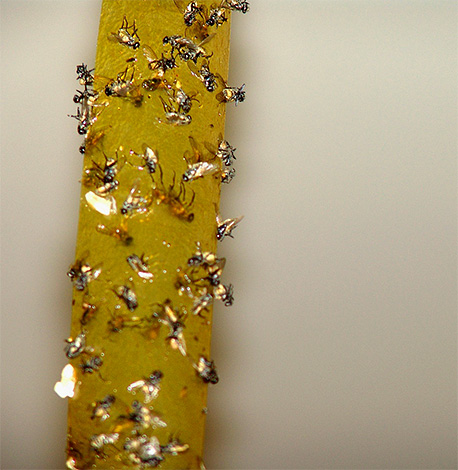 Прекрасним засобом, що дозволяє позбавитися від докучливих летуний у приміщеннях і на балконах, є липка стрічка. Володіючи специфічним запахом, такі покупні вироби приваблюють комах, які сідаючи на них, не можуть вирватися з липкого полону.
