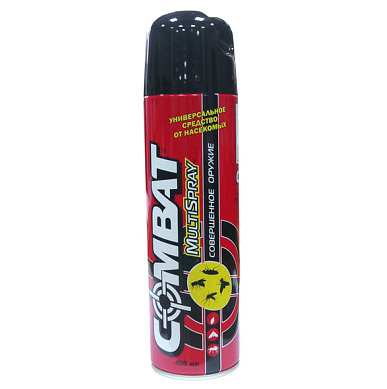 Combat Multi Spray – досить сильний інсектицидний препарат широкого дії, що дозволяє швидко позбутися від мошок в квартирі. Це засіб корейського виробництва випускається з різними ароматами. Клас небезпеки 3. Оцінити результат впливу препарату можна вже через 30 хвилин після застосування.