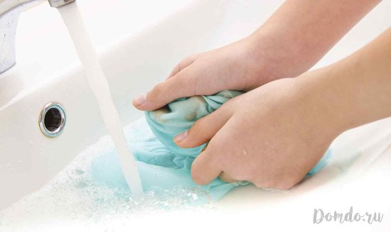 Важливо засвоїти, що плями з тканини краще виводити до прання (на стадії замочування), а жовтизну — після. Використовувати хлорку при цьому вкрай не рекомендується — вона може зіпсувати виріб, зробивши волокна органзи більш тонкими.