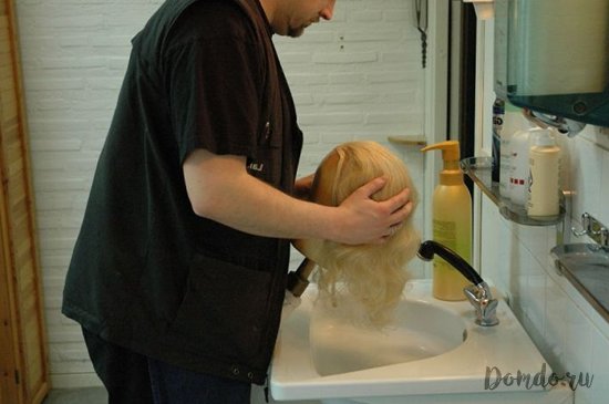 - замочіть в мильній воді перуку на 15-20 хвилин, це потрібно зробити для того, щоб пасма добре намокли і просочилися;