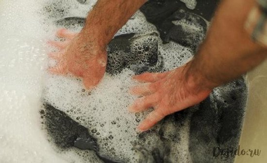 Для ручного прання світлих речей з поліестеру підійде універсальний порошок, різнокольорових — відповідно, засіб для кольорових тканин. Замочувати і прати поліестер потрібно в теплій воді.