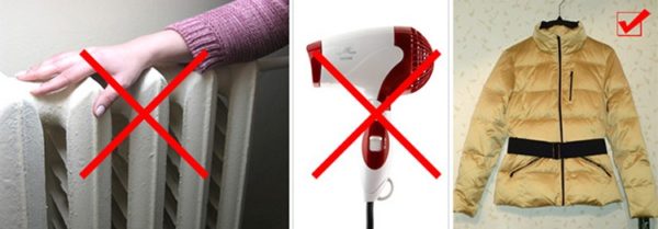 - Під час сушіння куртку слід постійно перебирати руками, періодично струшувати. Так ви разровняете сбившийся пух.