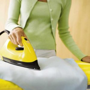 До прасуванні можна починати, як тільки виріб підсохло. Потрібно покласти тканину лицьовою стороною вниз на м’яку тканину, тому не варто далеко прибирати махровий рушник. Праска поставити на делікатний режим або прогріти його до середньої відмітки. Слід прасувати тільки з виворітного боку, уникаючи перекосу тканини. Не потрібно сильно притискати праска до виробу.