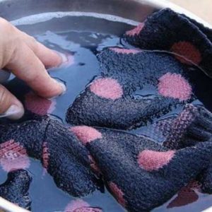 Шерсть чудово відпирається вручну, особливо в спеціальному шампуні для такої нитки. Якщо виріб занадто сильно забруднене, то допускається замочування на кілька годин у відповідному миючому засобі. Можна замочити шерсть в холодній воді, в яку додано трохи оцту – так шапочка вже точно не полиняє.