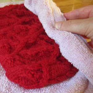 Віджимають такі речі дуже акуратно, щоб не деформувати. Найкраще дістати виріб з води, злегка віджати вручну над ванною, а потім розкласти на махровому рушнику і скрутити рулоном. Так рушник вбере зайву вологу, і ви зможете розкласти шапочку для сушіння.