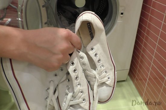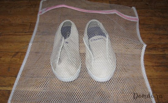 Перед відправкою кед в пральну машину, з них потрібно витягнути шнурки і устілки (в цьому випадку їх теж доведеться прати окремо). Потім взуття бажано помістити в спеціальний мішечок для прання. Якщо такого немає, можна використати звичайну наволочку від подушки.