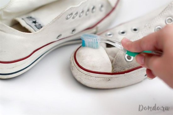 Загальновизнане і ефективний засіб, здатне видалити з поверхні білосніжних кед такі плями, що є в кожній аптечці. Це – перекис водню. Її застосування при пранні допоможе повернути кедів їх первісний колір. Ще одне відоме відбілюючий засіб – це сода. Підошви взуття можна ефективно відбілити за допомогою звичайної зубної пасти.