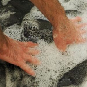 Якщо реакція на речовину нормальна, то приступаємо до процесу прання. Знову ж, використовуємо лише рідкі миючі засоби, а перемо спеціальною щіткою з м’якими щетинками.