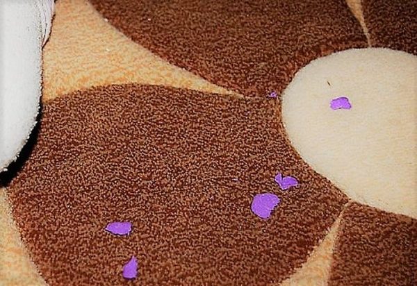 Перед роботою випробуйте дію розчинника на самому краю килима.