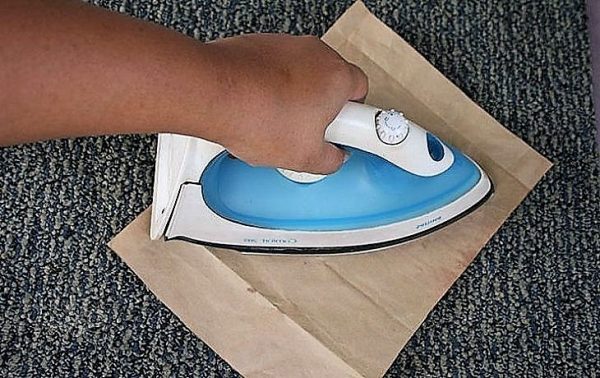 Якщо забруднений килим з коротким ворсом або ковролін, то можете використовувати праску і папір.