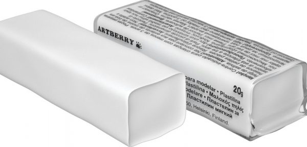 Сформуйте з білого пластиліну невеличкий плескатий брусочок. Розминати його до м’якого стану не потрібно.