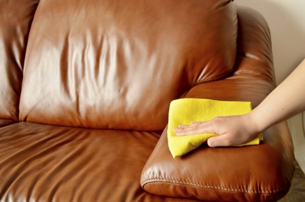 Жирний слід від воску з шкіряного дивана можна відмити з допомогою гелю для миття посуду