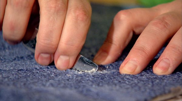 Механічно прибирати воскову корж небезпечно, оскільки можна пошкодити ворс на килимі