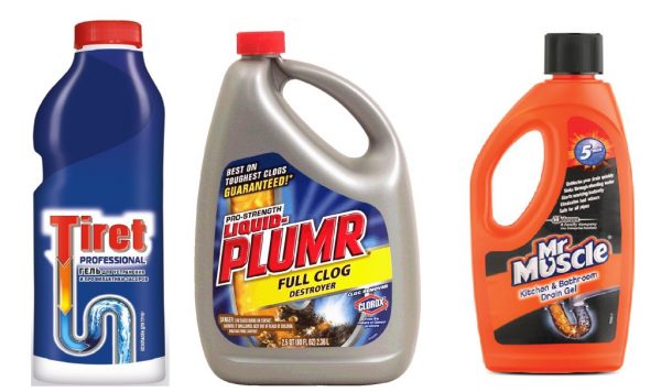 Торгівля пропонує для цієї мети рідини, гелі та порошки. Є засоби, призначені для певного виду труб, бувають і універсальні.