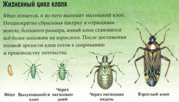 Більш наочно весь життєвий цикл клопа представлений у таблиці: