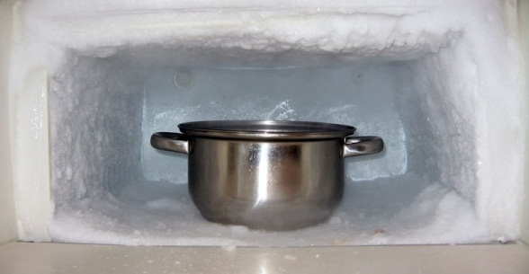 - поставити каструлю або таз з кип’ятком в морозильну камеру і міняти у міру охолодження води;