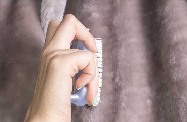 - Щедро посипте шубу картопляним крохмалем. Після чого з пульверизатора збризкайте розчином прального порошку і руками втріть все ворс. Після повної просушки вироби, вычешите полумягкой щіткою кілька разів вздовж по ворсу.