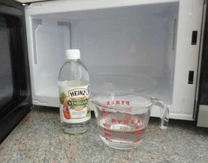 Як швидко помити мікрохвильовку, якщо вона дуже сильно забруднена? Допоможе звичайний оцет або оцтова кислота. Але врахуйте: якщо камера мікрохвильовки зсередини покрита емаллю, то цей спосіб застосовувати дуже часто не варто.