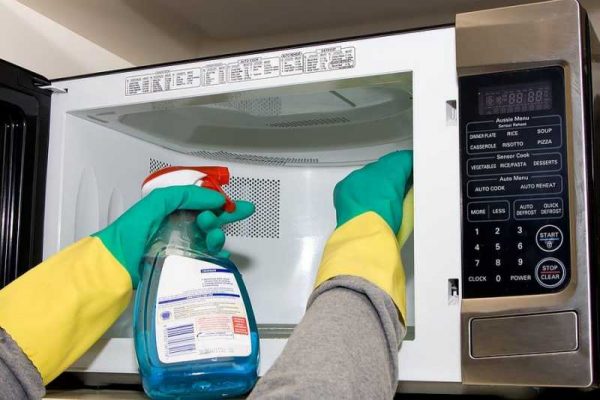 Багато господинь віддають перевагу «бабусині» рецепти сильної побутової хімії. Хоч хімічні засоби і агресивні, але дають незмінно чудовий результат. Більшість великих компаній випускають спеціально для мікрохвильовок чистячі склади. Зазвичай такі засоби продаються у вигляді спреїв, якими дуже зручно користуватися. Такими спреями можна очистити мікрохвильовку за 5 хвилин або навіть швидше.