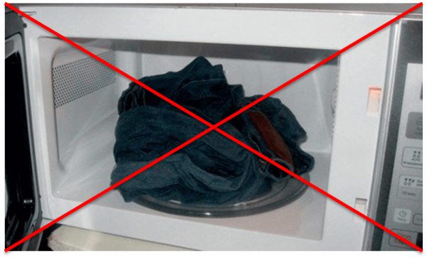 Ні в якому разі не намагайтеся посушити джинси в мікрохвильовій печі, так як будь-які джинси містити металеві елементи. Такий спосіб вибухонебезпечний!