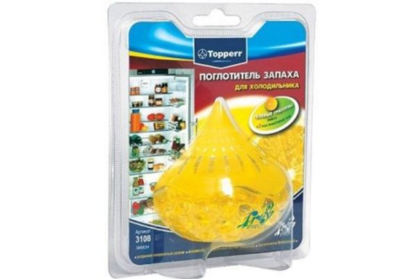 Якщо з якихось причин народні рецепти не змогли освіжити морозильну камеру, можна вдатися до допомоги синтетичних поглиначів. Вони продаються в більшості магазинів побутової хімії. Їх ціна залежить від об’єму, виду і терміну дії.