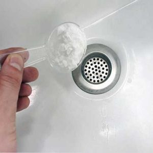 - приготувати розчин з 100 г соди, 100 г солі і 2 ст. ложок оцту, влити в злив. Через 30-40 хвилин промити гарячою водою під напором;
