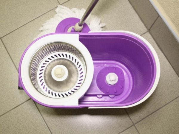 Мотузкова швабра може бути або з автоотжимом, або без нього. У першому випадку в комплекті йде відро зі спеціальним відсіком: