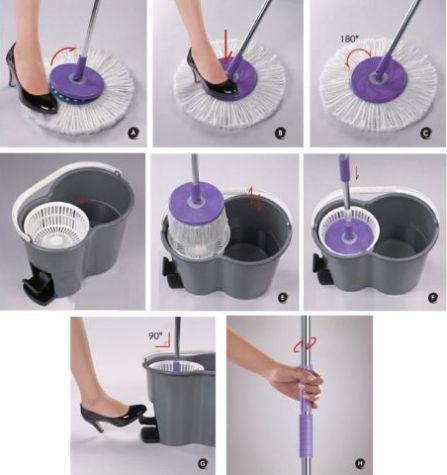 По суті це вдосконалена дерев’яна швабра для миття підлоги традиційної Т-подібної форми. Тільки тепер вона виготовляється із пластику або алюмінію і має безліч зручних доробок. Це і можливість насаджувати різні мопи, і обертова платформа, і автоотжим за допомогою спеціальної ручки на деяких моделях.