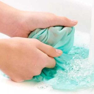 - Кольоровий одяг відмивають за допомогою води, етилового спирту, аміаку (10%), які змішують у рівних пропорціях.