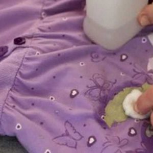 Спочатку потрібно дочекатися, поки засіб на тканини повністю просохне. Потім гострим предметом, наприклад, ножем, надлишки фарби знімаються з матеріалу. Залишиться забруднення, яке затирають ваткою, змоченою в спиртовому розчині або горілці.