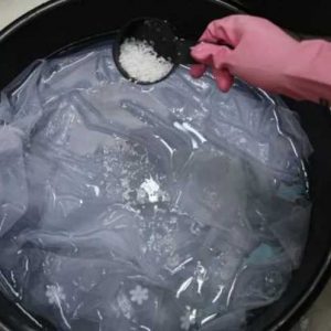 Якщо ви будете простирывать тюль руками, то попередньо потрібно замочити в сольовому розчині. Сіль очистить фіранки від жирових скупчень і прибере сірий відтінок і жовтизну. Для цього розчиняємо 100 г солі на 1 л води. В соляний розчин можна також додати трохи порошку з відбілюючим ефектом. У такому розчині штори повинні полежати хоча б три години.