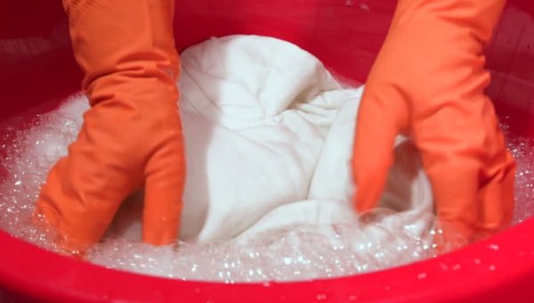 - У гарячу мильну воду опустіть забруднене виріб. Залиште на півгодини.