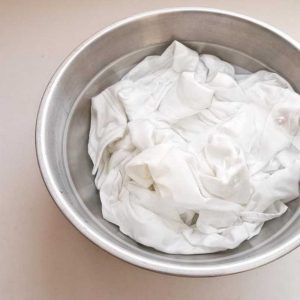 Хороший спосіб, як відбілити полинявшие білі речі – це замочити їх у нашатыре. Для цього 20 мл нашатирю розводять в 10 л гарячої води, а потім замочують матерію мінімально на годину. З вылинявших тканин зійдуть всі плями. Залишиться тільки прокрутити їх в пральній машинці – автомат і добре ще раз прополоскати, щоб пішов важкий запах. Нашатир має сильне відбілюючий дію.