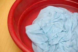 Намочіть у складі дрантя, а потім прикладіть її до забрудненого ділянки на тканини. Цей спосіб очищення дуже ефективний і відмінно підходить для білих речей.