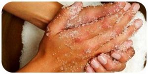 Якщо ж на шкірі є подряпини, то доведеться відмовитися від солі. Можна спробувати змити складу госп. милом. Кілька разів намильте руки і змийте мило теплою водою. Мило не так ефективно працює, як сіль, але все ж після декількох процедур руки стануть чистими.