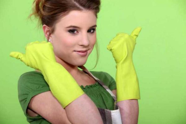 - Перед початком прибирання переодягніться в одяг, який не шкода. Надягніть На руки міцні гумові рукавички.