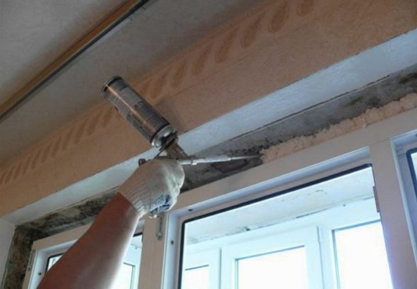 На фото — установка вікна з використанням піни