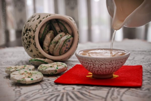 - Пуер — у пресованих брикетах або млинцях зберігають за особливим принципом. Оскільки процес ферментації все ще триває, то брикету необхідний повітря і герметичність може не дотримуватися. Досить загорнути брикет або млинець в папір і покласти в темний кухонну шафку подалі від спецій.