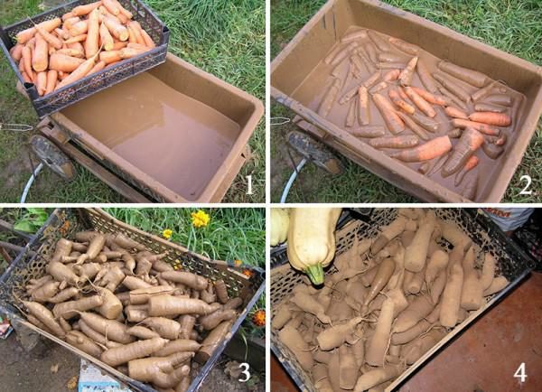 Є два варіанти обробки коренеплодів глиною перед зимівлею, вибирайте той, який здасться найбільш зручним: