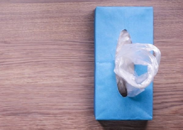 Тут вся хитрість не в тому, щоб зробити контейнер для пакетів своїми руками. Можна використовувати будь-яку відповідну за розмірами коробку, прикрасивши її за бажанням. А в складанні шарудить упаковки так, щоб вона не займала багато місця і не розгорталася.